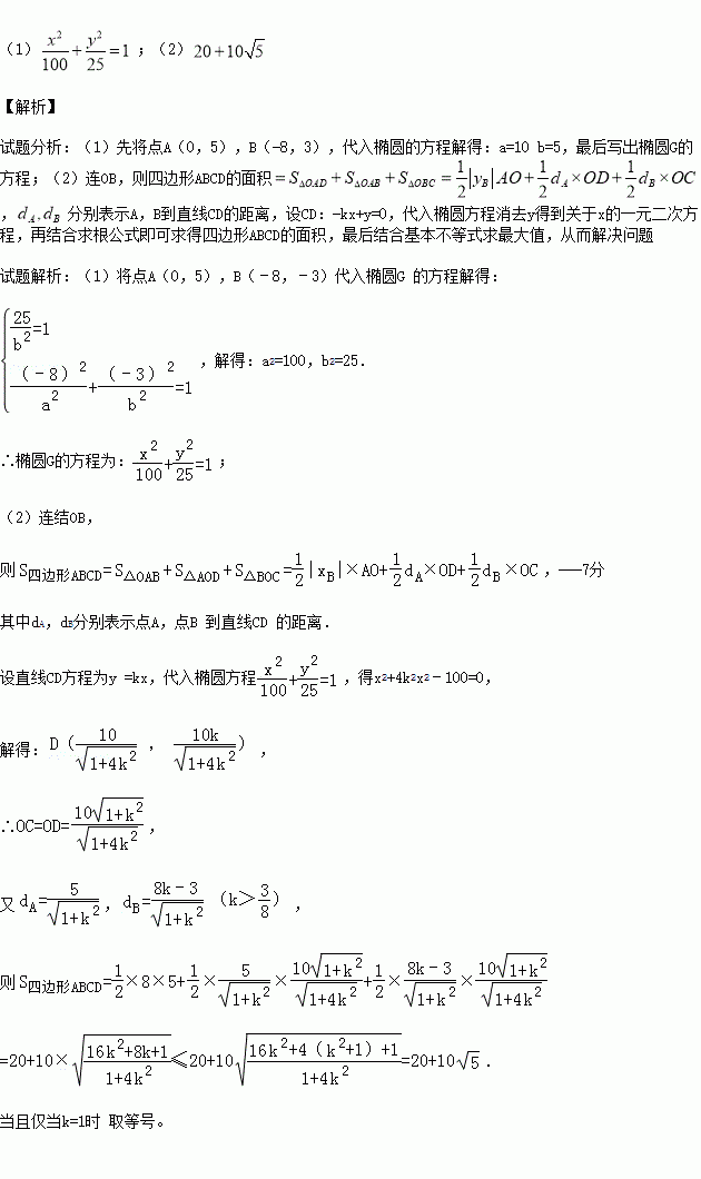 ,过点A(0,5),B(﹣8,﹣3),C、D在该椭圆上,直线CD过原点O,且在线段AB的右下侧.