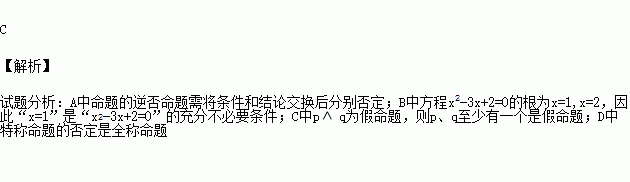 A.命题“若x2-3x+2=0,则x=1”的逆否命题为:“若x≠1,则x2-3x+2≠0”
