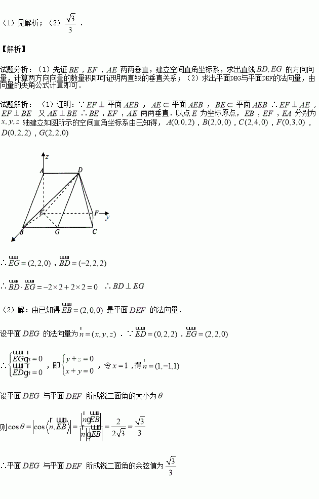 (Ⅱ)求平面DEG与平面DEF所成锐二面角的余弦值.
