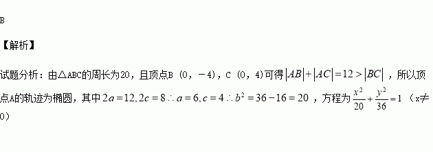 已知△ABC的周长为20,且顶点B (0,-4),C (0,4),则顶点A的轨迹方程是( )