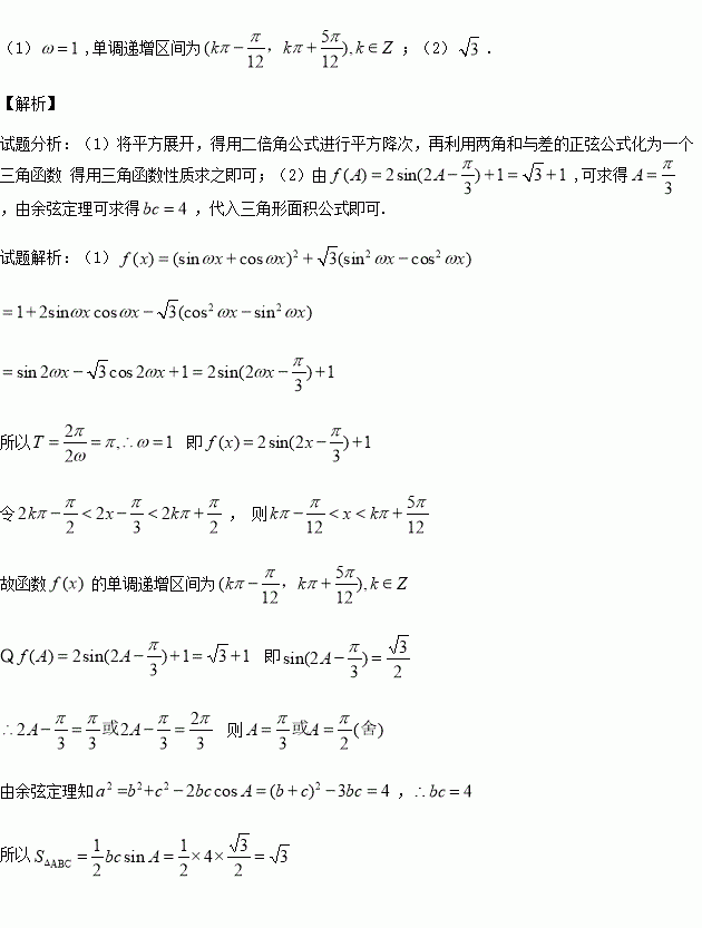 (2)在锐角ΔABC中,角ABC所对的边分别为abc,f (A)=