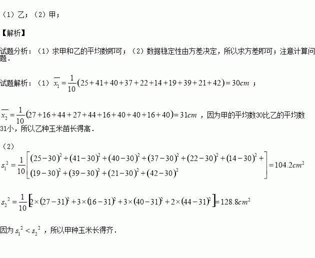 从两块玉米地里各抽取10株玉米苗,分别测得它们的株高如下(单位:cm ):