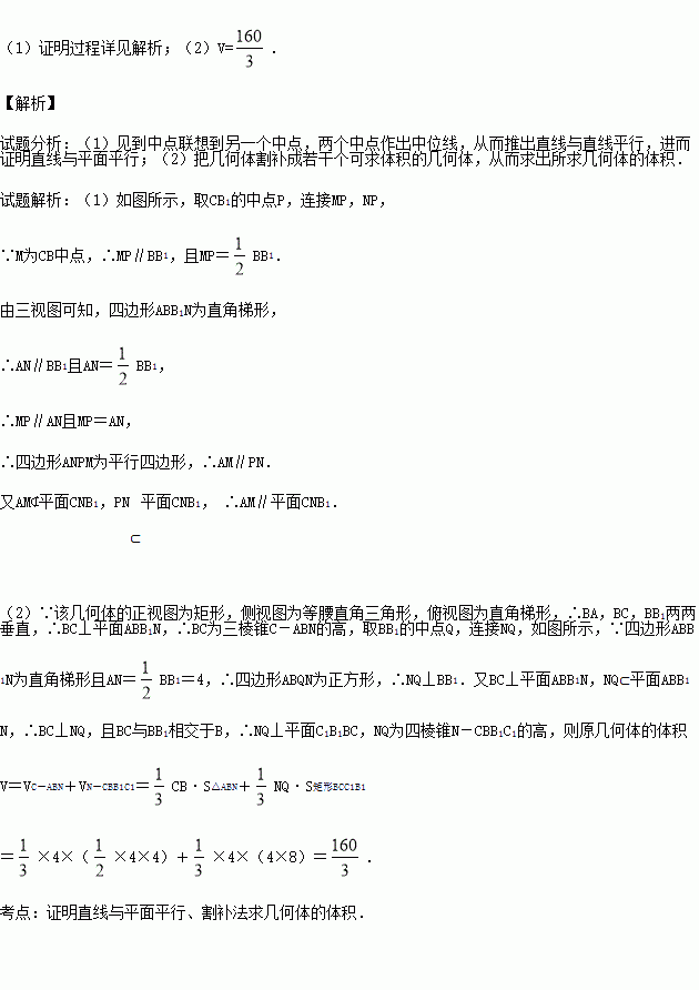 (1)若M为CB中点,证明:MA∥平面CNB1;