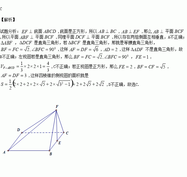 D.若该四棱锥的正视图为正方形,则四棱锥的侧面积为![]()