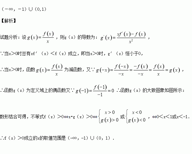 设函数f/(x)是奇函数f(x)(x∈R)的导函数,f(-1)=0,当x>0时,xf/(x)-f(x)<0,则使得f(x)>0成立的x的取值范围是 .