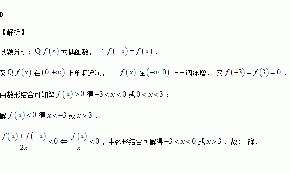 (平行班做)若函数y=f(x)为偶函数,且在(0,+∞)上是减函数,又f(3)=0,则