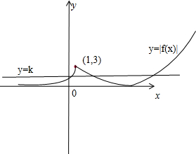 分析:由题意画出函数y=|f(x)|,y=k的图象,判断方程|f(x)|=k有三个不同的实根,求出k的范围即可.