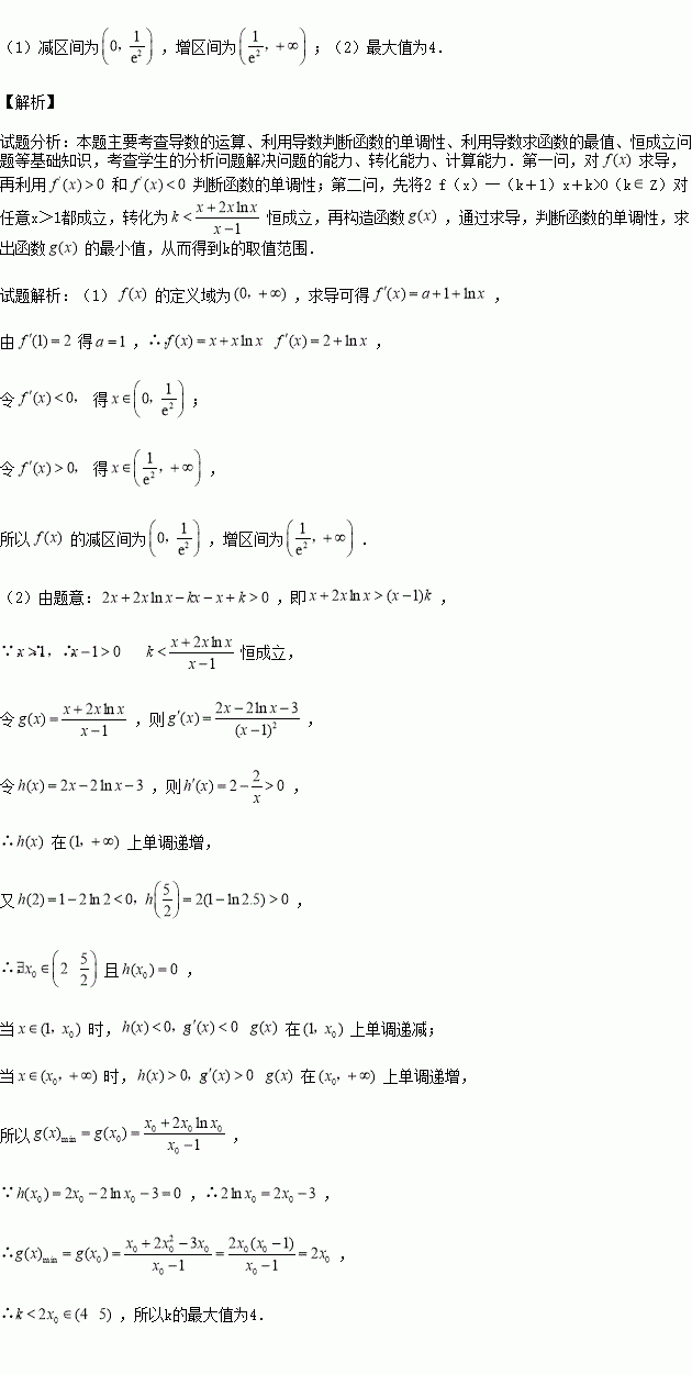 Z)对任意x>1都成立,求k的最大值