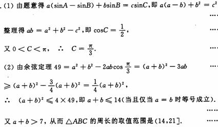 在△ABC中,角A,B,C的对边分别是a,b,c,点(a,b)在直线x(sinA-sinB)+ysinB=csinC上.