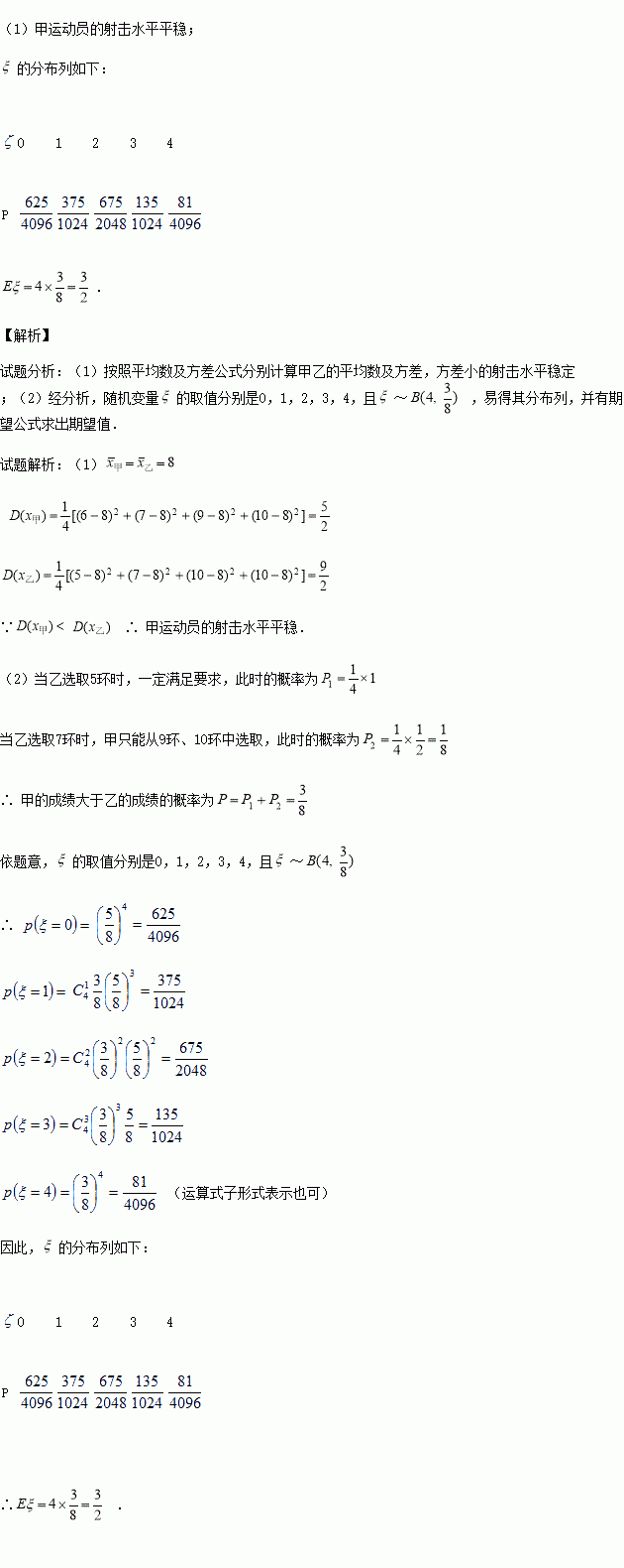 (1)试比较甲、乙两名运动员射击水平的稳定性;