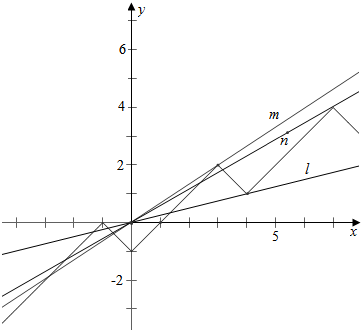 可知直线m的斜率km=$\frac{2-0}{3-0}$=$\frac{2}{3}$,直线n的斜率kn=$\frac{4}{7}$,