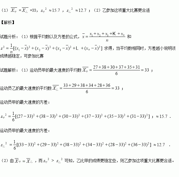 (2)根据(1)所得数据阐明:谁参加这项重 大比赛更合适.