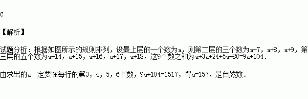 从1开始的自然数按如图所示的规则排列,现有一个三角形框架在图中上下或左右移动,使每次恰有九个数在此三角形内,则这九个数的和可以为( )
