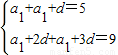 【答案】分析:由等差数列{an}中,a1+a2=5,a3+a4=9,知,解得a1=2,d=1,由此能求出S10的值.