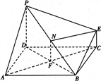 | (2)证明:如图1,连结AC与BD交于点F,连结NF, ∵F为BD的中点,N为线段PB的中点, ∴NF∥PD且 又EC∥PD且 ∴NF∥EC且NF=EC ∴四边形NFCE为平行四边形, ∴NE∥FC. ∵DB⊥AC,PD⊥平面ABCD,AC ∴AC⊥PD. 又PD∩BD =D, ∴AC⊥平面PDB, ∴NE⊥平面PDB。 |