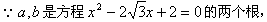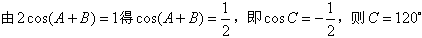 在△ABC中,BC=a,AC=b,a,b是方程的两个根,且