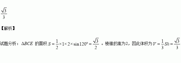 在四棱锥P?ABCD中,底面ABCD是边长为2的菱形,∠BAD=60°,侧棱PA⊥底面ABCD,PA=2,E为AB的中点,则四面体P?BCE的体积为 .