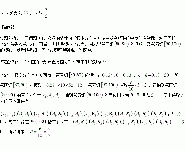 (1)估计所抽取的数学成绩的众数;
