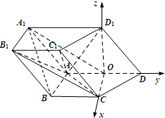 以O为原点建立空间直角坐标系O-xyz如图所示,则D1(0,0,1),A(0,-1,0),D(0,1,0),C(1,0,0),A1(0,-2,1),B(1,-1,0),$\overrightarrow{{D_1}{C_1}}=\overrightarrow{DC}=({1,-1,0})$,$\overrightarrow{A{D_1}}=({0,1,1})$,$\overrightarrow{C{C_1}}=\overrightarrow{D{D_1}}=({0,-1,1})$,…(7分)