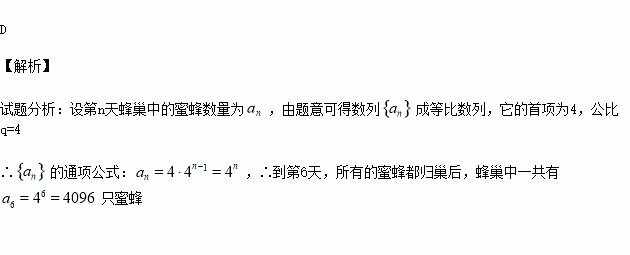 一个蜂巢里有1只蜜蜂,第1天,它飞出去找回了3个伙伴;第2天,4只蜜蜂飞出去,各自找回了3个伙伴......如果这个找伙伴的过程继续下去,第6天所有的蜜蜂都归巢后,蜂巢中蜜蜂的总只数为( )
