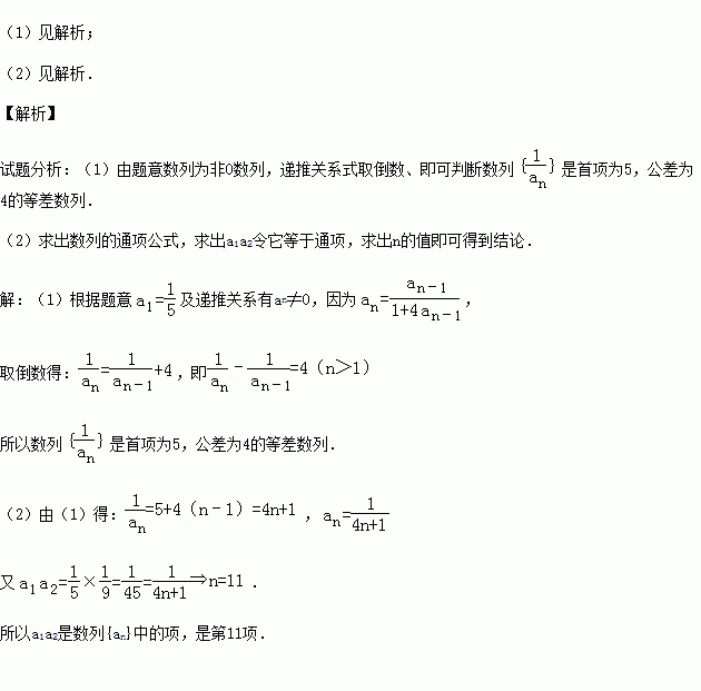 (2)试问a1a2是否是数列{an}中的项.如果是,是第几项;如果不是,说明理由.