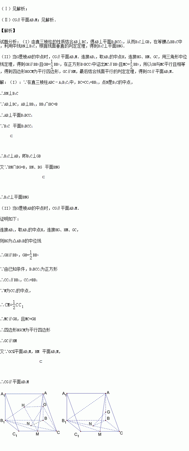 (Ⅰ)求证:B1C⊥平面BNG;