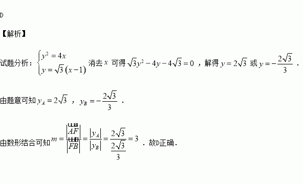 已知抛物线的焦点为,直线与C交于A、B(A在轴上方)两点,若,则实数的值为( )