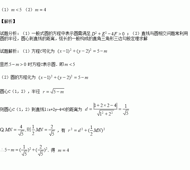 (2)若圆C与直线l: x+2y-4=0相交于M,N两点,且MN=