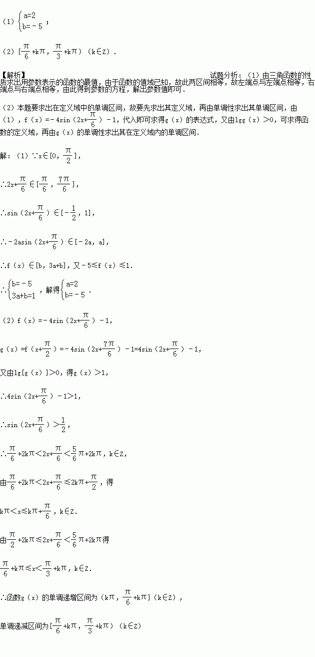 )且lg[g(x)]>0,求g(x)的单调区间.