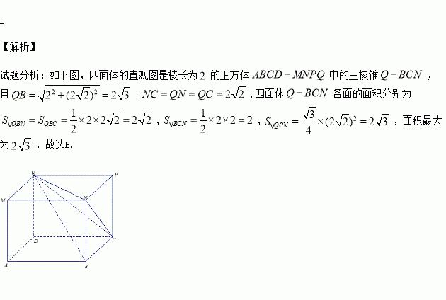 某四面体的三视图如图所示,正视图、俯视图都是腰长为