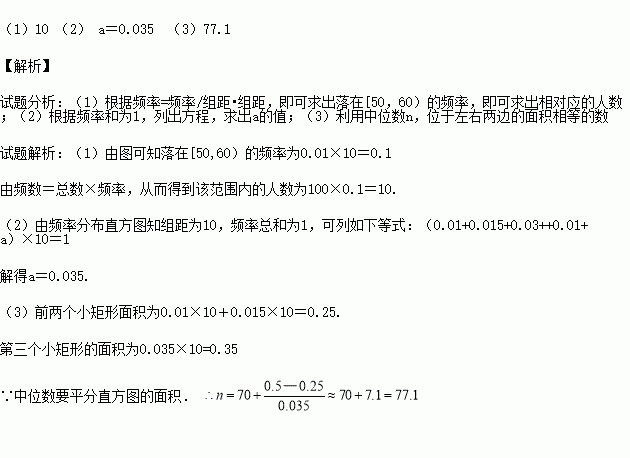 (1)估计这100名学生的数学成绩落在[50,60)中的人数;