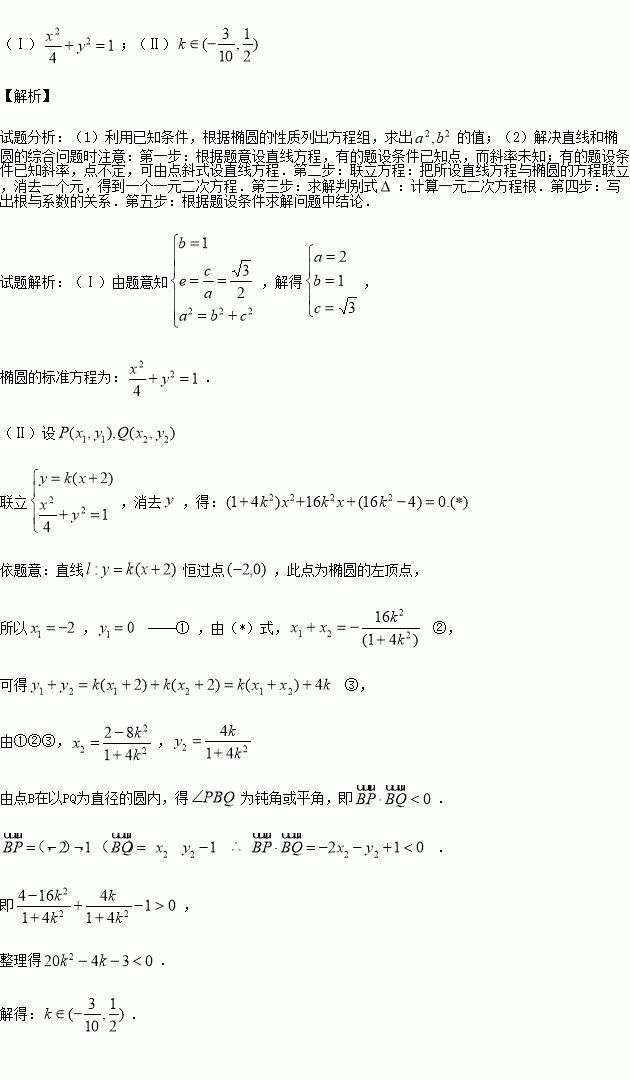 交椭圆于P、Q两点,若点B始终在以PQ为直径的圆内,求实数