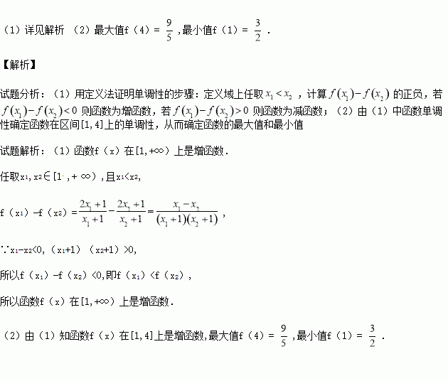 (1)判断函数在区间[1,+∞)上的单调性,并用定义证明你的结论.