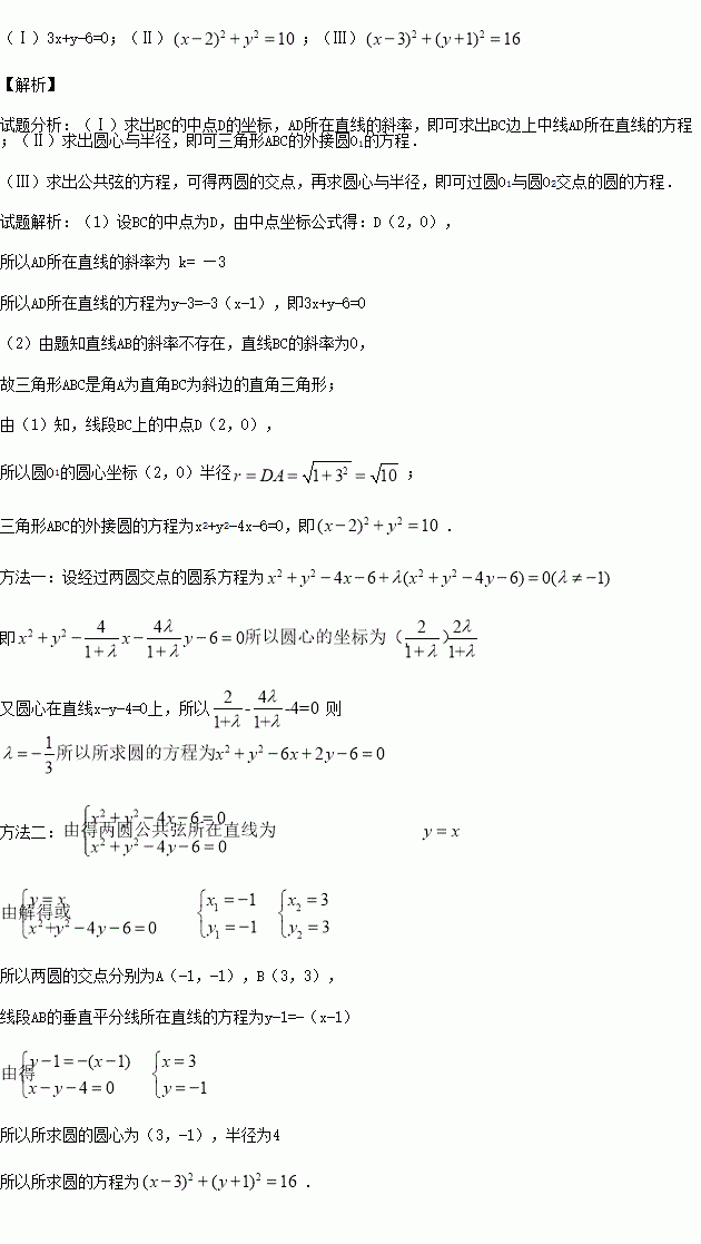 (Ⅱ)三角形ABC的外接圆O1的方程;