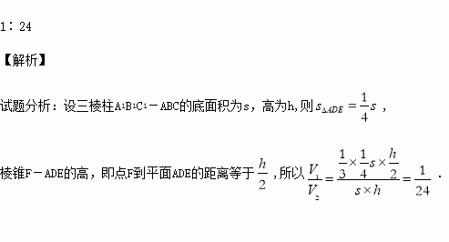 如图,在三棱柱A1B1C1-ABC中,D,E,F分别是AB,AC,AA1的中点.设三棱锥F-ADE的体积为V1,三棱柱A1B1C1-ABC的体积为V2,则V1∶V2=________.