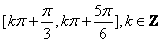 函数f(x)=cos(2x-)+2sin(x-)sin(x+)的最小正周期为(    ),单调减区间为(    )。