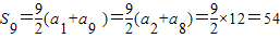 等差数列{an}的前项和为Sn,若a2+a8=12,则S9等于( )