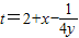 若正实数x,y满足x+y=1,且t=2+x-
