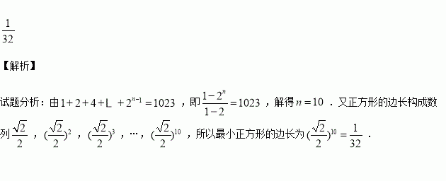 如图所示是毕达哥拉斯(Pythagoras)的生长程序:正方形上连接着等腰直角三角形,等腰直角三角形边上再连接正方形,…,如此继续,若共得到1023个正方形,设初始正方形的边长为