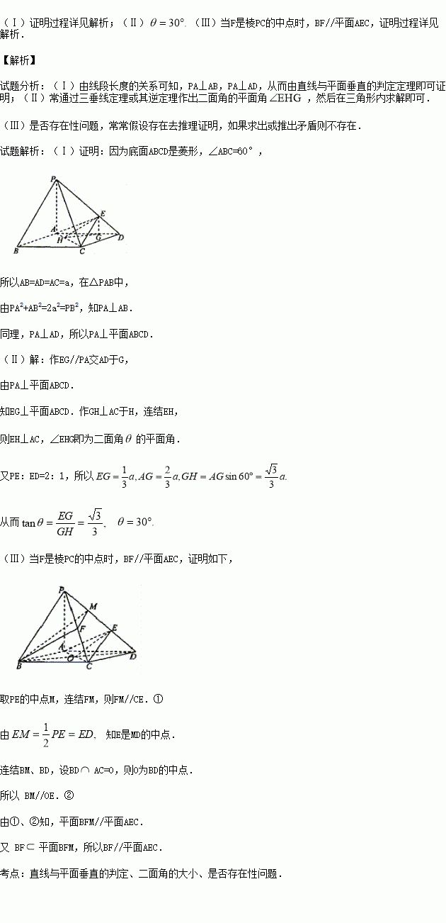 (Ⅲ)在棱PC上是否存在一点F,使BF//平面AEC?证明你的结论.
