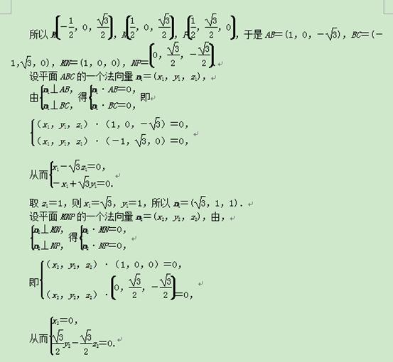 取z2=1,则y2=1,x2=0,所以n2=(0,1,1).
