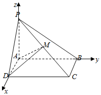 ∴$\overrightarrow{PB}$=(0,1,-1),$\overrightarrow{AD}$=(1,0,0),$\overrightarrow{AM}$=($\frac{1}{2}$,$\frac{1}{2}$,$\frac{1}{2}$),