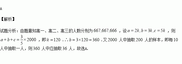 人的样本进行调查,则高二参与跑步的学生中应抽取( )