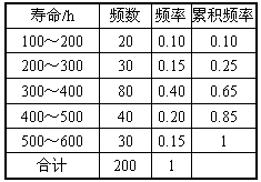 | 寿命/小时 | 100~200 | 200~300 | 300~400 | 400~500 | 500~600 |