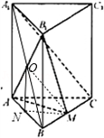 因为直三棱柱ABC﹣A1B1C1,所以O是A1B的中点。