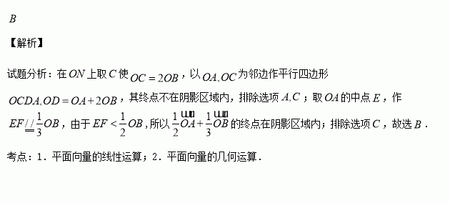 为起点,则终点落在阴影区域内(包括边界)的有( )