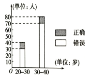 “开门大吉”是某电视台推出的游戏节目.选手面对1~8号8扇大门,依次按响门上的门铃,门铃会播放一段音乐(将一首经典流行歌曲以单音色旋律的方式演绎),选手需正确回答出这首歌的名字,方可获得该扇门对应的家庭梦想基金.在一次场外调查中,发现参赛选手多数分为两个年龄段:20~30;30~40(单位:岁),其猜对歌曲名称与否的人数如图所示.