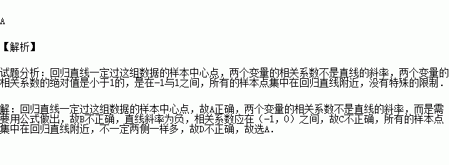 是由这些样本点通过最小二乘法得到的线性回归直线(如图),以下结论正确的是()
