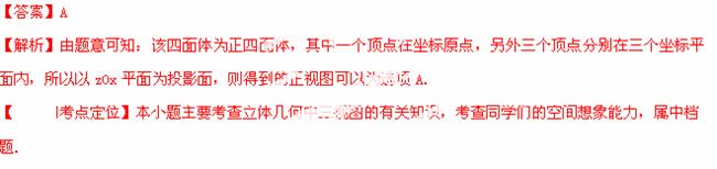 一个四面体的顶点在空间直角坐标系O-xyz中的坐标分别是(1,0,1),(1,1,0),(0,1,1),(0,0,0),画该四面体三视图中的正视图时,以zOx平面为投影面,则得到的正视图可以为( )