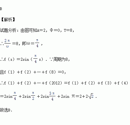函数y=Asin(ωx+φ)(A>0,ω>0)的部分图像如图所示,则f(1)+f(2)+f(3)+…+f(2 012)的值等于( )